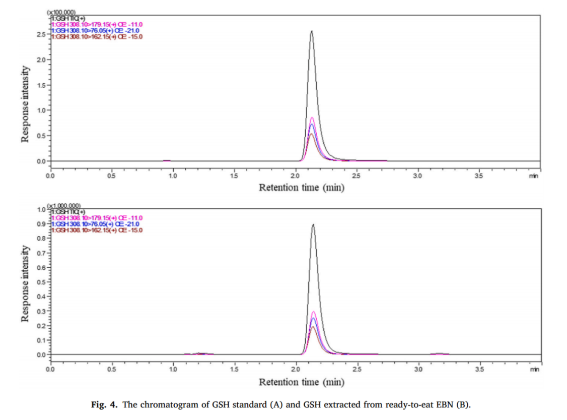 圖:優(yōu)化的LC-MS方法能有效分離出即食燕窩中谷胱甘肽且無(wú)其他離子干擾