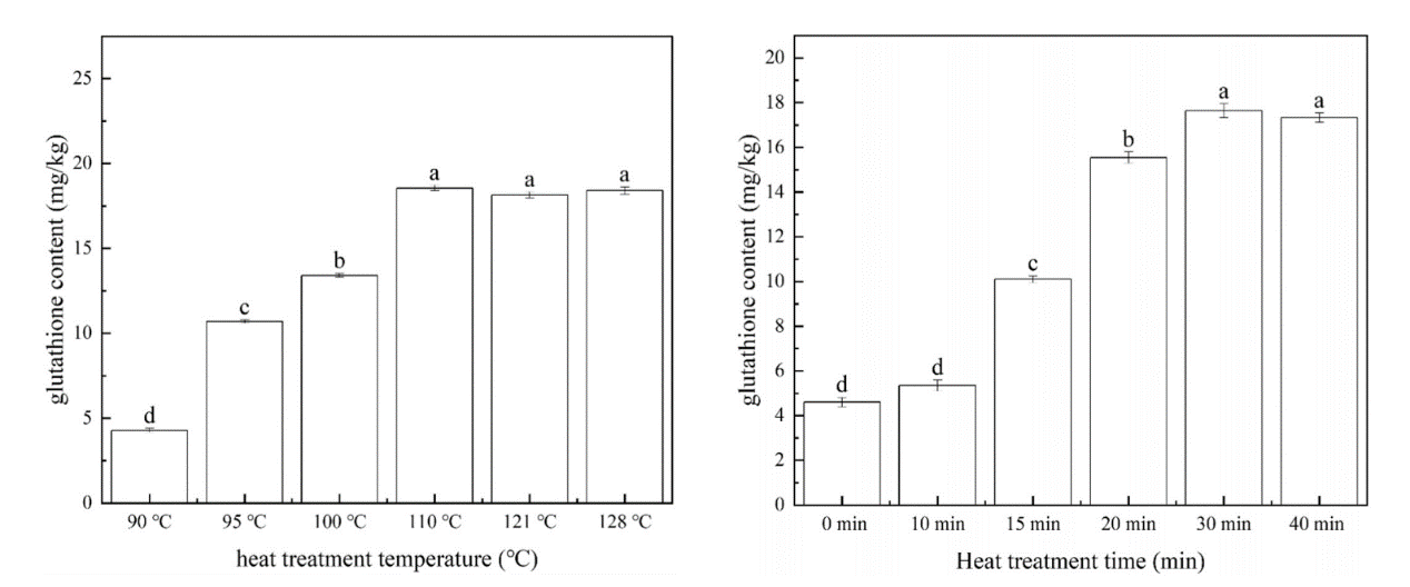 圖:適當(dāng)增加蒸煮溫度與時(shí)間有利于增加游離谷胱甘肽的含量