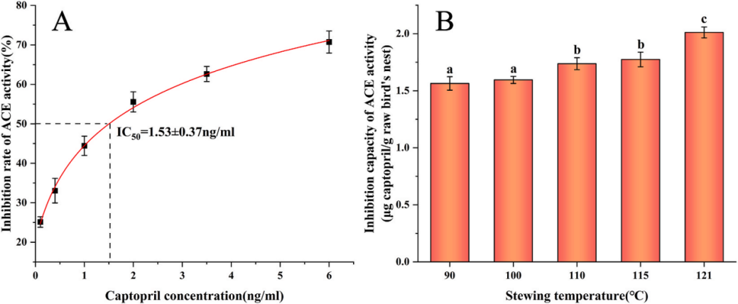 圖:不同燉煮溫度燕窩消化后的ACE抑制活性及活性肽情況②